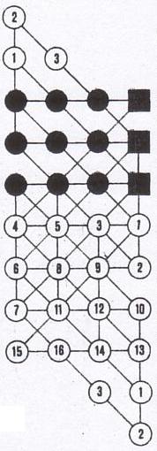 moves starting from the nine black circles of the initial pattern)