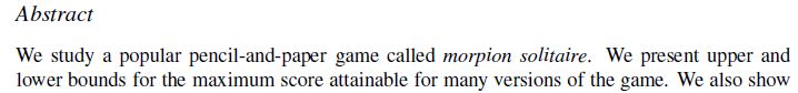 Après le titre qui les utilise aussi, la première phrase contenant les mots "Morpion Solitaire" est :